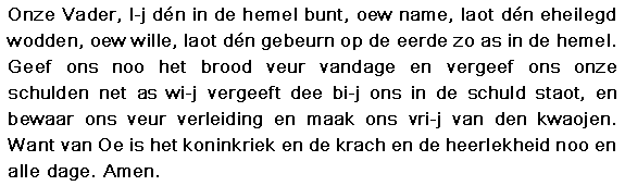 Translation Our father, which art in heaven, hallowed be thy name. Thy kingdom come. Thy will be done on earth as it is in heaven. Give us this day our daily bread. And forgive us our debts, as we forgive our debtors. And lead us not into temptation, but deliver us from evil. For thine is the kingdom and the power and the glory for ever and ever. Amen.
